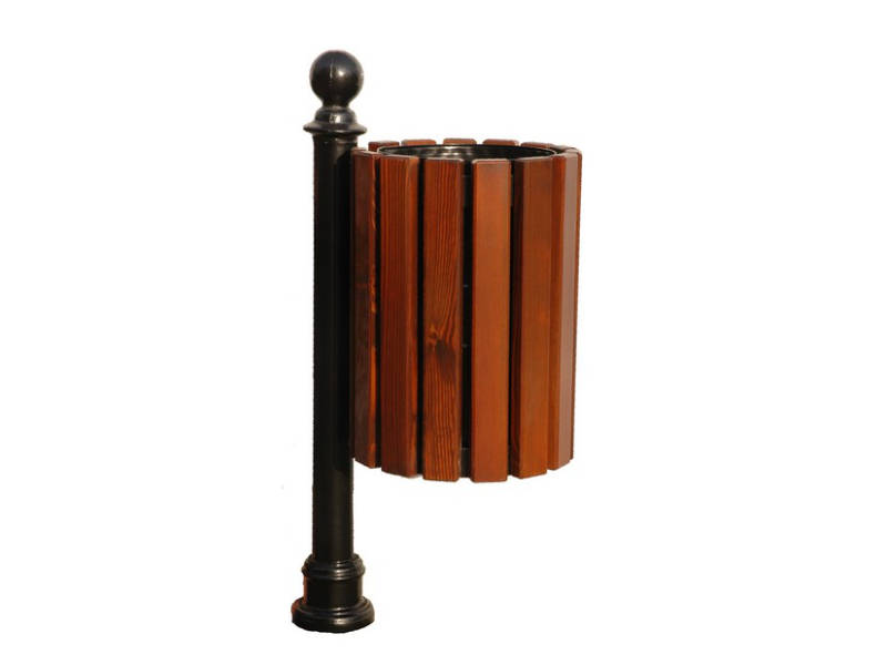 Kosz Madryt 2055. Stylowy kosz stalowo-drewniany z popielnicą. W standardzie wkład z blachy ocynkowanej, czarny.