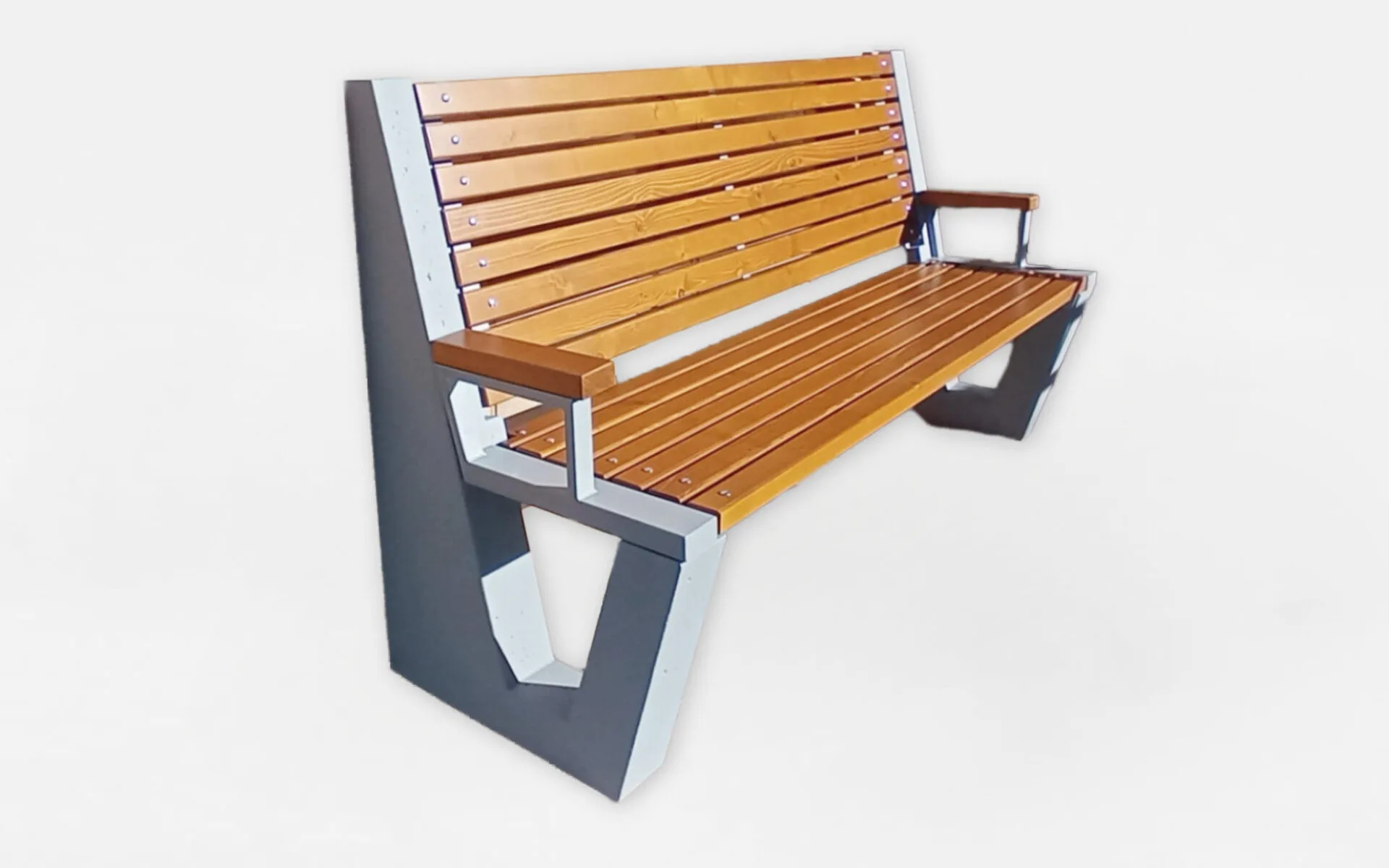 Ławka Vera 1014A z podłokietnikiem – nowoczesna forma betonu i ponadczasowe połączenie materiałów. Ławka ta doskonale wpisze się w przestrzeń osiedlową, parkową czy uliczną.