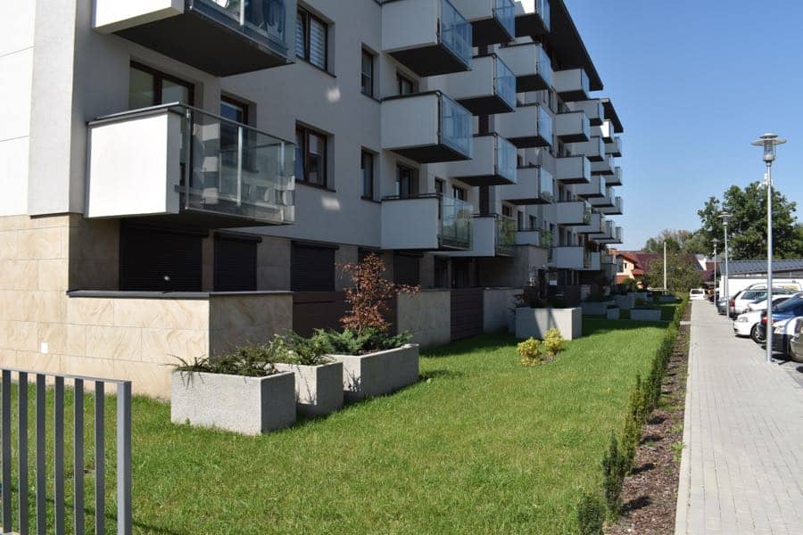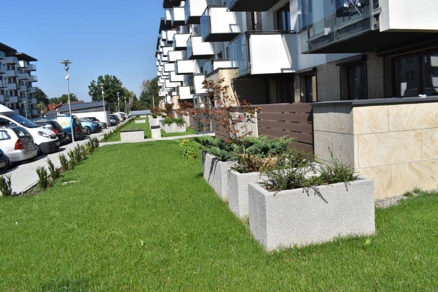 Na osiedlu Sołtysowska postawiliśmy na solidność – betonowe donice, kosze i ławki wpasowują się idealnie w osiedlowy klimat. Surowy beton to mocny akcent, dzięki któremu przestrzeń między blokami staje się spójna i uporządkowana. To nie tylko wygląd – to wygoda na co dzień: miejsca do wypoczynku, miejsca na odpoczynek, a całość łatwa w utrzymaniu.