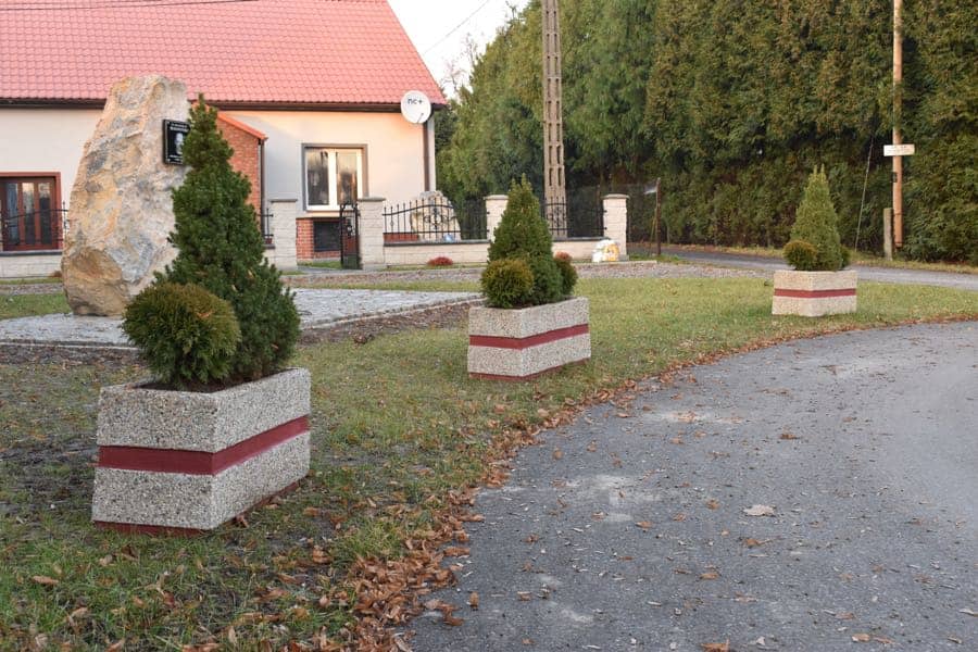Na skwerze przy kościele w Rudawie zastosowano duże betonowe donice, które w prosty, ale efektowny sposób porządkują przestrzeń i dodają jej elegancji. Ich masywna forma świetnie komponuje się z otoczeniem – klasyczną architekturą kościoła i uporządkowaną nawierzchnią placu.